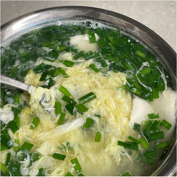 국에 계란이 먼저들어간다면 한참 끓이게되어 식감이 푸석해집니다.