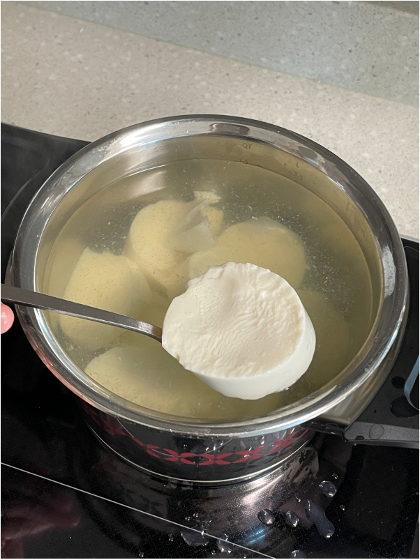 1. 준비된 멸치육수에 순두부를 큼직하게 숟가락으로 떼어서 넣습니다.